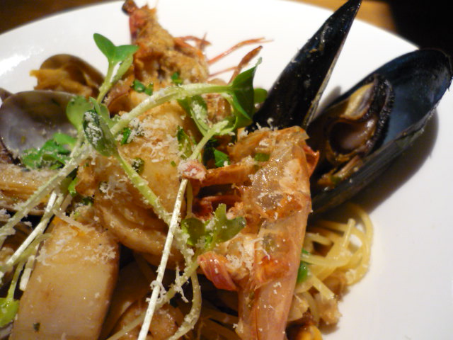 メインの海の幸ペスカトーレ・ジェノベーゼパスタ。