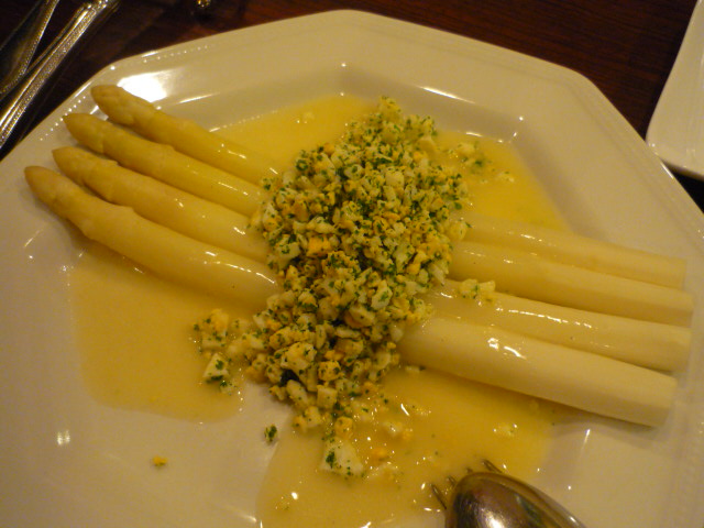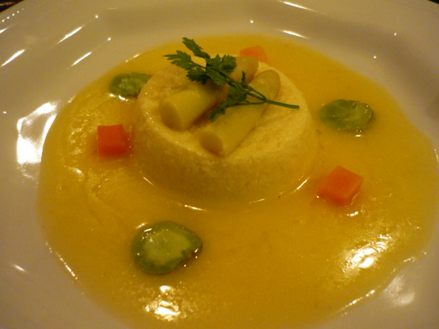 ホワイトアスパラのフランドル風とプリン仕立て。