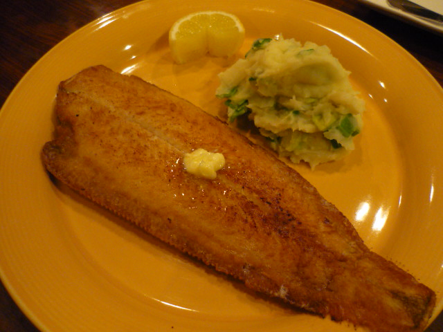 舌平目は淡路産でかなり肉厚、しっとりして今まで食べたものより食感・味ともに最高だった。本来はバターソース等を使用するのだが、私があっさり味に・・・お願い!と注文したので、レモンを絞ってさっぱりと食べられた。