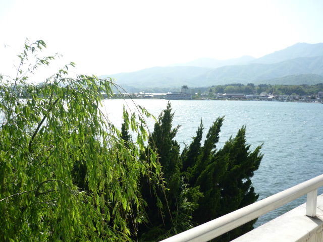 部屋のバルコニーから加茂湖が一望。