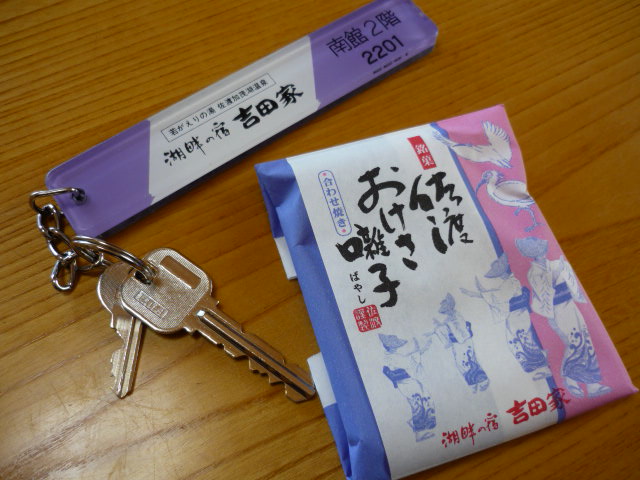ホテルのキーとおもてなしのお菓子。